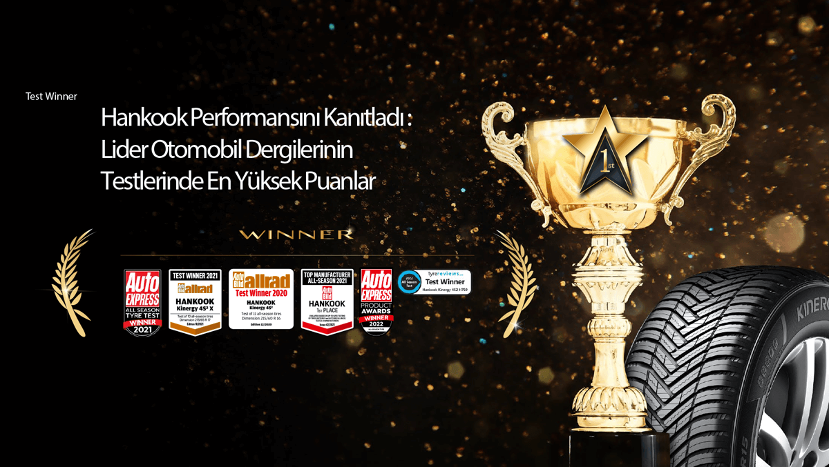 Hankook Kinergy 4S2 H750, **Lastikciburada** güvencesiyle TyreReviews 2022 Dört Mevsim Lastiği Testi'nde zirveye ulaştı! Dünyanın önde gelen lastik değerlendirme platformu TyreReviews, kuru, ıslak ve karlı zeminlerde gerçekleştirdiği testlerde Kinergy 4S2'nin üstün performansını tescilledi. Testlerde, lastiğin gürültü seviyesi ve yakıt verimliliği de göz önünde bulunduruldu.